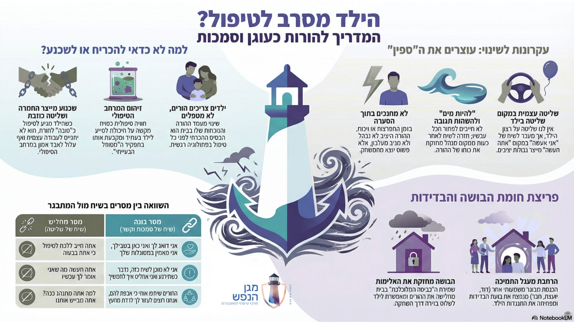1. חשש שמשהו ממש לא טוב קורה לו והוא חייב עזרה מקצועית - יכול מאוד להיות שזה המצב, אבל אם זה המצב והילד לא מעוניין לקבל טיפול, אז יש בעיה נוספת ש"הצטרפה" לליבת הכאב, ועל זה אנחנו כהורים צריכים לתת מענה.
