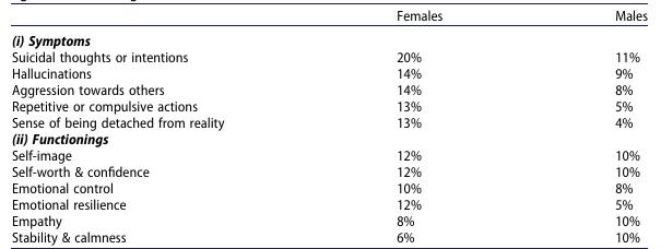 נקודה חשובה נוספת שהמחקר מציג - אחוז הילדים הנמצאים במצוקה עם ציון MHQ שליליים שמצביעים על חמישה תסמינים חמורים או יותר עולה כמעט ב 10% עבור נשים ו 7% עבור גברים.