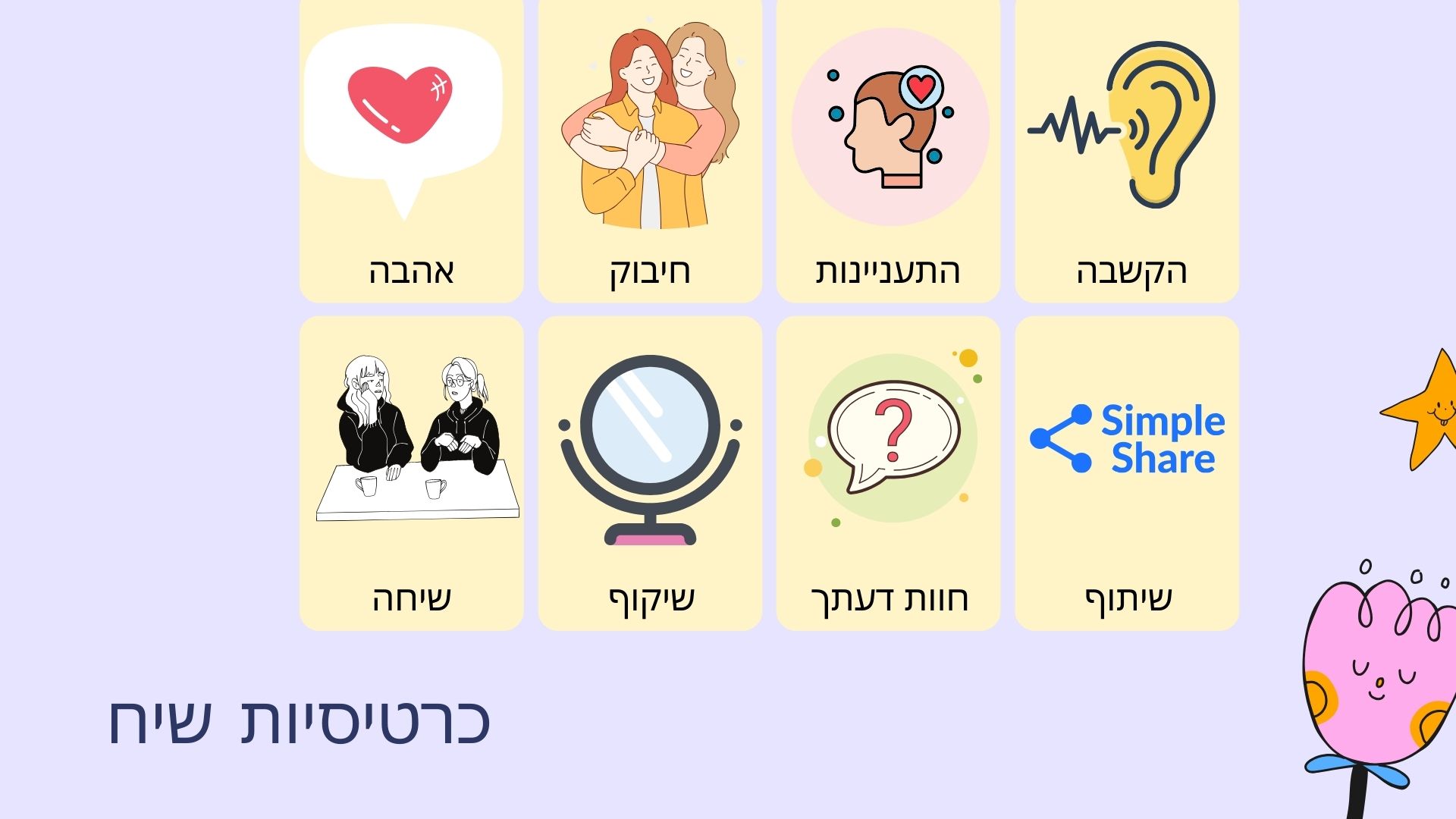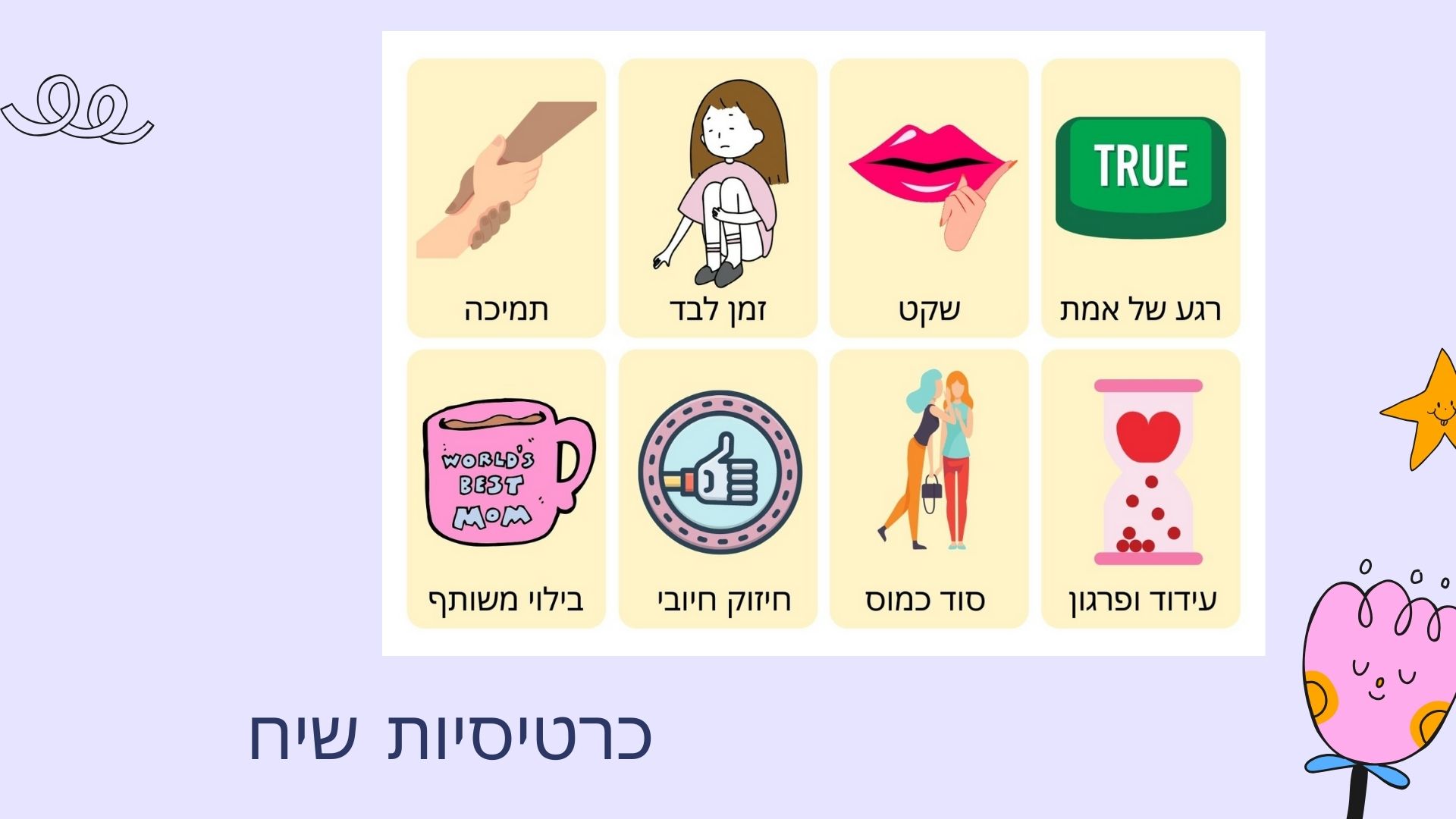הנה דוגמא לכרטיסיות שיכולות לשמש אתכם לשיח